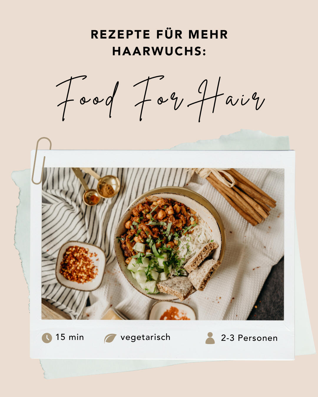 Bei FOOD FOR HAIR bekommst du jede Woche ein leckeres Rezept für mehr Haarwuchs. So kannst du alle Nährstoffe tanken, die deine Haare wachsen lassen und oft sogar Haarausfall reduzieren.